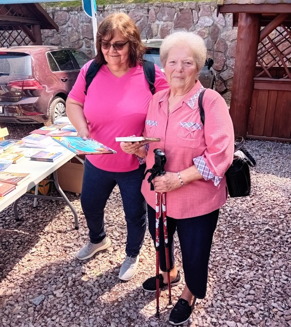 Na vrchole zastavujeme, Ján sa zdraví s manželkou, ktorá je zaangažovaná v miestnej nadácii Agapa, pomáhajúcej pri organizácii podujatia. Pri vchode do areálu a v stánku s informáciami rozdáva letáčiky.