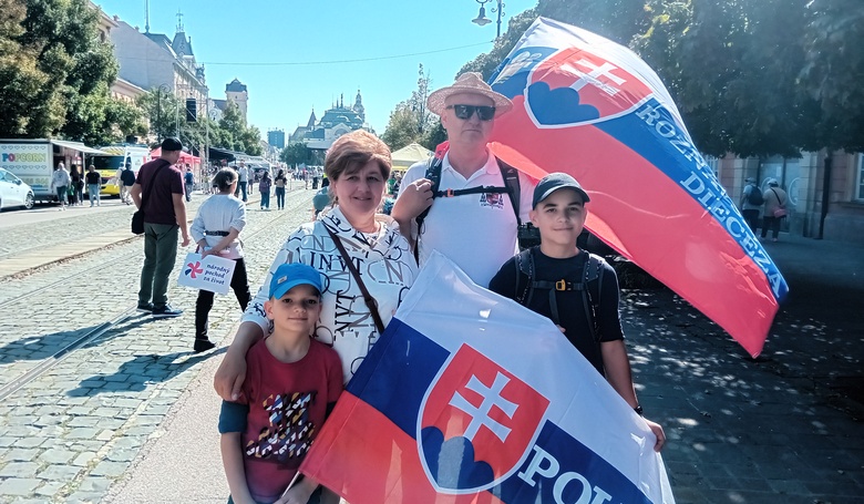 Pochod sa medzičasom priblížil k cieľu, soche Immaculaty na Hlavnej ulici. „Prešli sme celú trasu, sme nadšení, prídeme aj nabudúce. Sme nielen rodičia a starí rodičia, ale už aj prarodičia, takže sme radi, že prišlo toľko mladých rodín s deťmi, ktorým záleží na tom, aby sa v našej republike žilo v láske a pokoji,“ povedali nám Košičania Katarína a Václav, ktorí tento rok oslavujú 55. výročie sobáša.