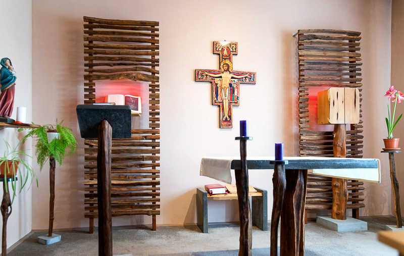 V komunitnej Kaplnke Sedembolestnej Panny Márie na prvom poschodí sa stretávajú viackrát denne, na svätej omši i na modlitbách. „Ako komunita máme spoločné modlitby ráno, na obed a večer. Sú súčasťou nášho misionárskeho života. Svätý Jozef Freinademetz hovoril, že misionár, ktorý sa prestane modliť, nemôže byť dobrým misionárom.“