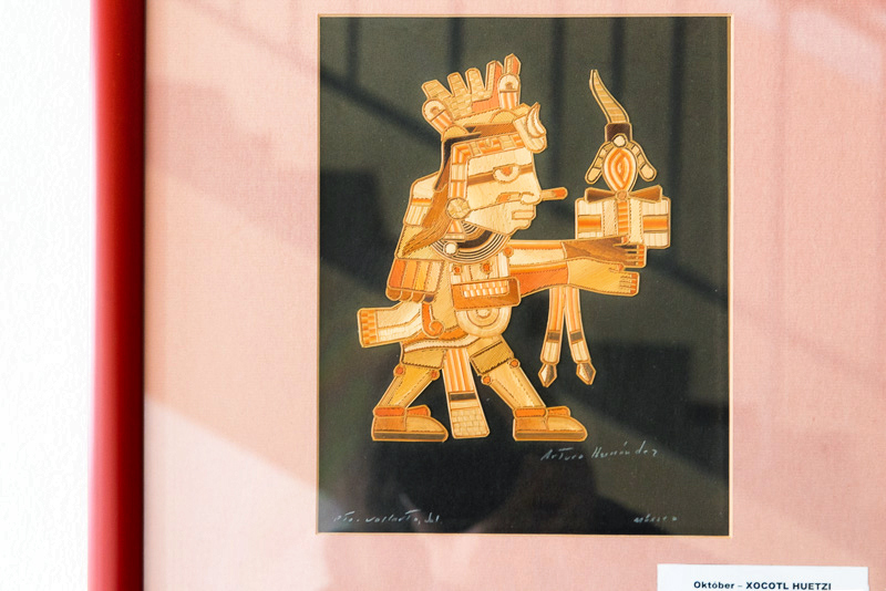 Na chodbe sa vďaka obrazom zoznamujeme s osobnosťami slovenskej provincie. Schodisko lemujú mexické vyobrazenia mesiacov roka vytvorené z tisícok drobných stebielok rôznych tráv. Obdivujeme precíznosť a trpezlivosť umelca a vchádzame do jednej z kancelárií.