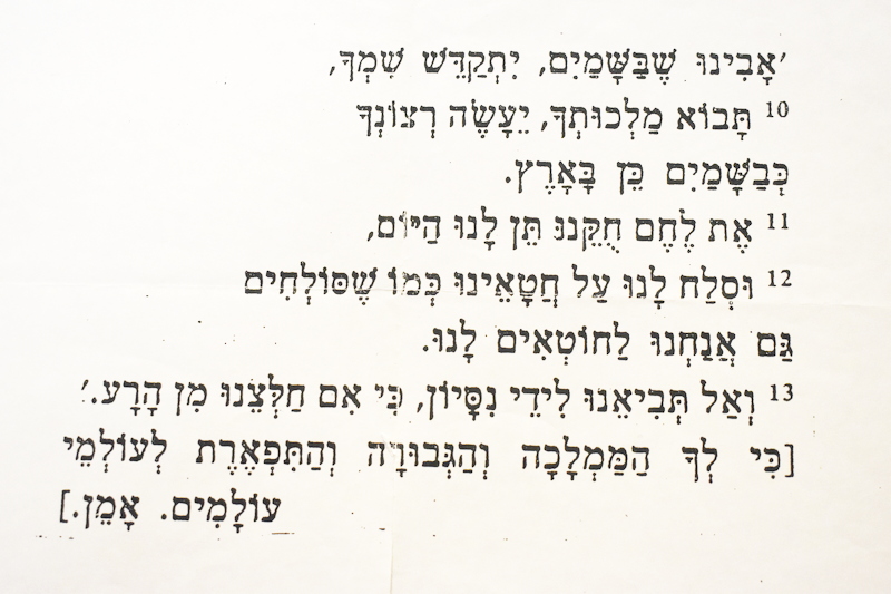 Každú hodinu začínajú modlitbou Otčenáš v hebrejčine podľa evanjelistu Matúša (porov. Mt 6, 9 – 13). „Mám ho od roku 1992 od môjho profesora, ktorý ma učil,“ vysvetľuje lektor.