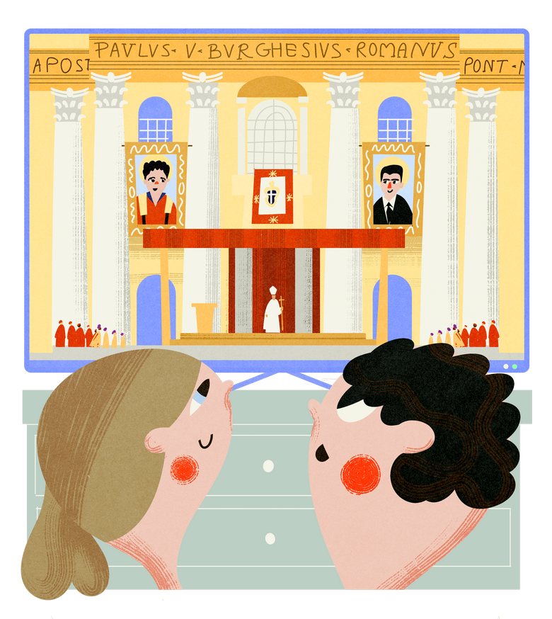 O: Ale malo by. Vysielajú priamy prenos z Vatikánu, kde prebieha svätorečenie dvoch výnimočných mladých ľudí.
