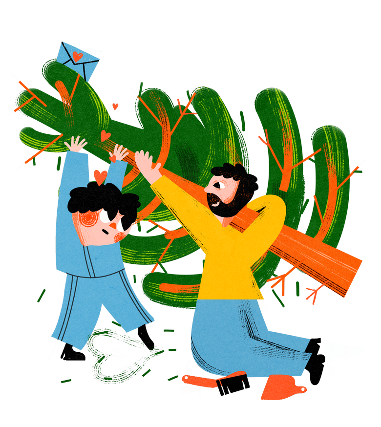 Ocko: Za lásku sa nemusíš hanbiť. Buď jej dobrým kamarátom, chráň ju, a keď chceš, môžeme jej niečo malé vyrobiť. Ukážem ti, akú valentínku som raz vyrobil pre svoju prvú lásku. Ale mame to nehovor.
