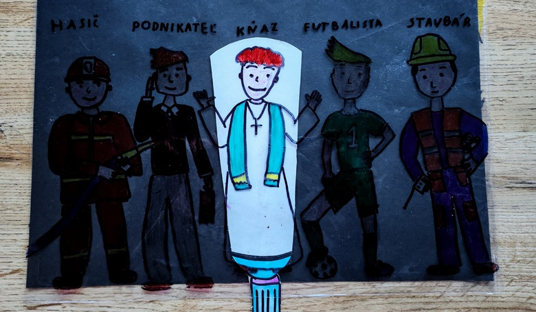 Poďte si s nami vyrobiť jednoduchú hru, v ktorej si posvietime na rôzne povolania tak, ako aj nám Duch Svätý osvetľuje cestu, po ktorej máme ísť. Budeme potrebovať len euroobal, čierny a biely papier a fixky, najlepšie nezmývateľné.