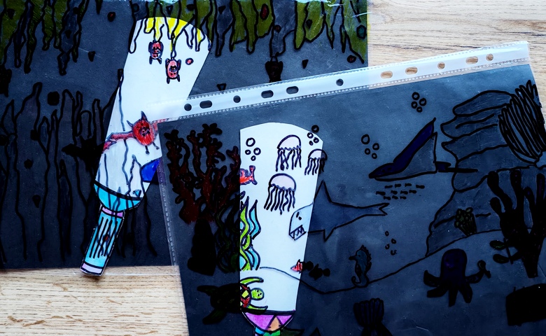 Obrázky si môžete nakresliť aj z druhej strany euroobalu a zabávať sa s kúzelnou baterkou o niečo viac. My sme si ešte vyrobili jaskyňu s netopiermi a podmorský svet.