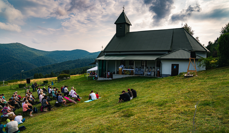 Napriek nepriazným predpovediam počasia si veriaci prišli do Úhornej uctiť Pannu Máriu Snežnú. Snímka: Martin Veselovský