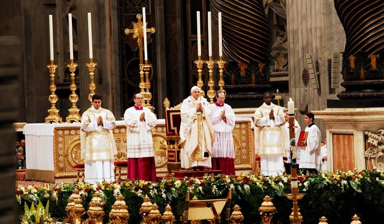Pápež Benedikt XVI. počas slávenia Veľkonočnej vigílie v roku 2008 v Bazilike sv. Petra vo Vatikáne. Snímka: -TK KBS-/Ľubomír Rebek