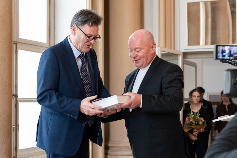 Ivan Šulík odovzdal vzácnemu hosťovi ako dar knihu, ktorá je symbolom spolupráce Nemecka a Slovenska – Goetheho Fausta s ilustráciami renomovaného akademického maliara Miroslava Cipára.