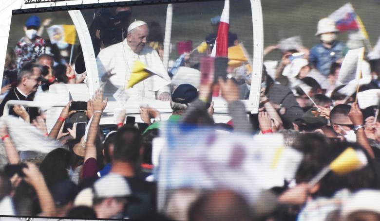 Pápež František navštívil Slovensko 12. až 15. septembra 2021. Zavítal do Bratislavy, Prešova, Košíc a svoju cestu zavŕšil svätou omšou v Šaštíne. Snímka: Peter Slovák