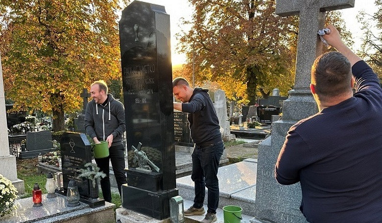 Seminaristi spoločne upratali hroby zosnulých kňazov na cintoríne v Nitre. Snímka: TIBOR UJLACKÝ