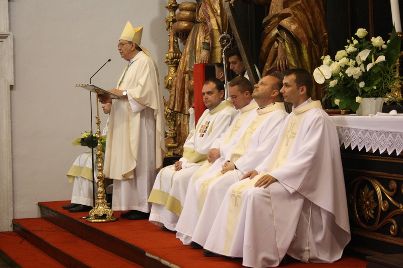 Nitra – Nitriansky biskup Viliam Judák v Katedrále sv. Emeráma v Nitre vyslúžil sviatosť kňazstva Róbertovi Holečkovi. Počas slávnosti boli do trvalého diakonského stavu uvedení traja kandidáti a štyria bohoslovci prijali sviatosť posvätného diakonátu. Po vydaní svedectva súcosti, ktoré predniesol rektor Kňazského seminára sv. Gorazda Marián Dragúň, sa kandidátom na službu Bohu a Cirkvi prihovoril biskup Judák. Vyzval ich, aby sa v svojej službe neprispôsobovali tomuto svetu, ale aby boli vernými spolupracovníkmi Ježiša Krista; aby evanjelizovali a pretvárali tento svet a nedopustili, aby svet pretváral ich. Povzbudil ich, aby sa nenechali obsluhovať, ale sami boli služobníkmi pre tých, ku ktorým sú poslaní, a nech im pri tom nikdy nechýba ochota a odvaha.