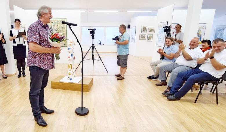 Momentka z vernisáže výstavy Jozefa Vydrnáka. Snímka: Igor Válek
