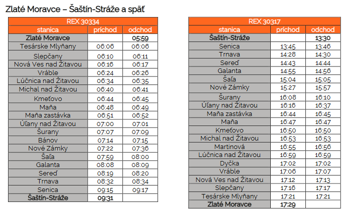 * V Jelšovciach je zabezpečený prestup cestujúcich od Os 5047 zo smeru Nitra (REX 30336 bude čakať 10 minút v prípade meškania Os 5047).