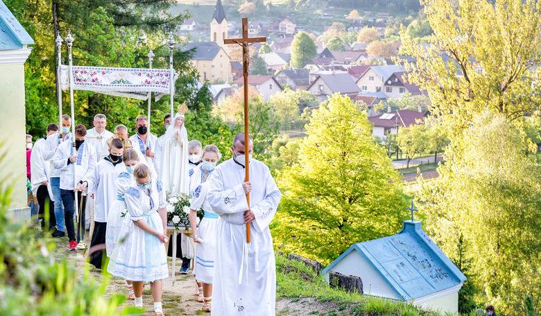Procesiu s Najsvätejšou oltárnou sviatosťou na frivaldskú kalváriu viedol biskup Viliam Judák. Snímka: Juraj Zbýňovec