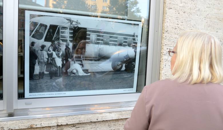 Súčasťou výstavy bola aj slávna fotka zachytávajúca Jána Pavla II. ako bozkáva slovenskú zem. / Snímka: Erika Litváková