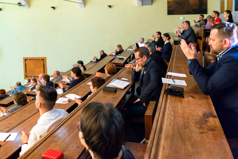 Jedno z aktuálnych prepojení symbolizuje názov auly bohosloveckej fakulty.