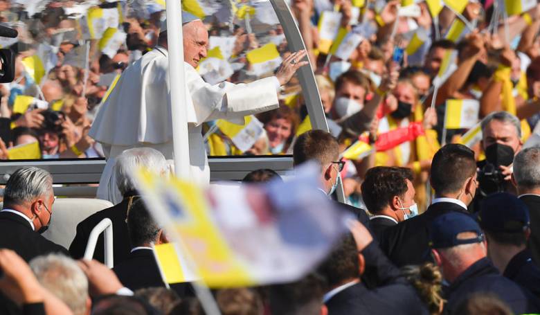 Po 9. hodine pristálo na košickom letisku lietadlo so Svätým Otcom. Na východe našej vlasti vzácneho hosťa privítal košický arcibiskup metropolita Bernard Bober a primátor mesta Košice Jaroslav Polaček. Následne Svätého Otca previezli na miesto slávenia liturgie pred Mestskú športovú halu v Prešove. V prichádzajúcom papamobile žehnal a pozdravoval prítomných. Dav ho vítal skandovaním pozdravu: „Sláva Isusu Christu!“ i slovami: „Vrúcne sme vás čakali.“ Odhaduje sa účasť viac ako 30-tisíc veriacich.