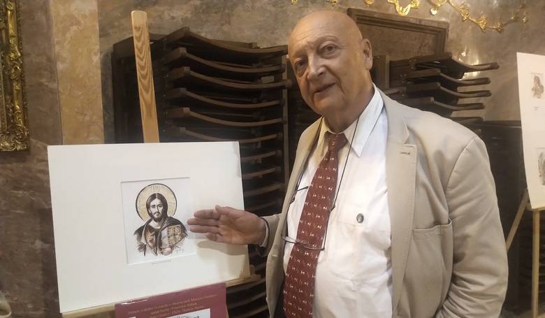 Renomovaný výtvarník Martin Juraj Oscitý sa osobne zúčastnil na vernisáži svojich ilustrácií na Nitrianskom hrade. Snímka: Tibor Ujlacký