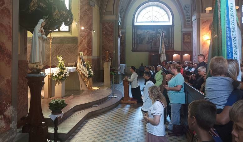 Ružencová pobožnosť pred ikonou Panny Márie. Snímka: Alexandra Tomečková, OCDS