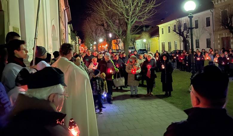 Kežmarskí veriaci sa v sobotu 25. marca modlili so sviečkami v rukách. Snímka: -FT-