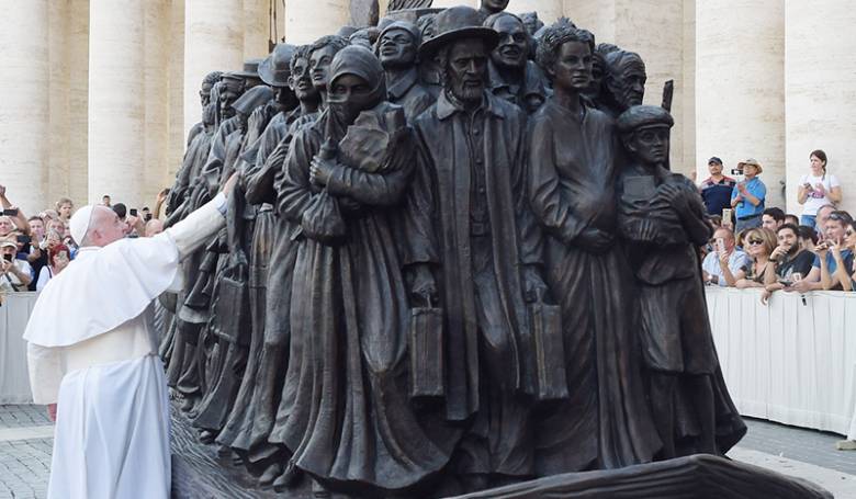 Dnes je Cirkev vyzvaná vychádzať na cesty existenciálnych periférií, aby liečila tých, čo sú zranení, a hľadala stratených; bez predsudkov či strachu, bez prozelytizmu, avšak pripravená rozšíriť svoj stánok na prijatie všetkých. Medzi obyvateľmi periférií nájdeme mnohých migrantov a utečencov, vysídlencov a obete obchodovania, ktorým Pán chce prejaviť svoju lásku a ohlasovať svoju spásu. „Súčasný prílev migrantov predstavuje novú misijnú ,hranicuʻ; jedinečnú príležitosť ohlasovať Ježiša Krista a jeho evanjelium bez toho, aby sme odišli zo svojho prostredia, svedčiac konkrétne o kresťanskej viere, s láskou a hlbokým rešpektom voči iným náboženským prejavom. Stretnutie s migrantmi a utečencami iných vierovyznaní a náboženstiev je plodnou pôdou na rozvoj úprimného a obohacujúceho ekumenického a medzináboženského dialógu“ (Príhovor národným riaditeľom pre pastoráciu migrantov, 22. septembra 2017).
