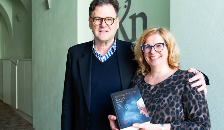Na snímke je Peter Seewald so šéfredaktorkou SSV Martinou Grochálovou, ktorá knihu Benedikt XVI. Život preložila do slovenčiny. Snímka: Erika Litváková