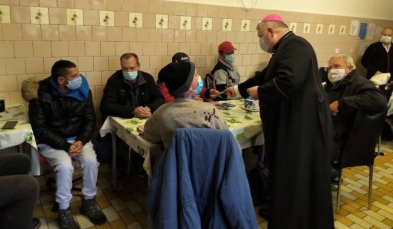 Nitriansky biskup Viliam Judák sa v rozhovore s chudobnými zaujímal o ich aktuálne podmienky a povzbudil ich k viere a modlitbe. Snímka: Tibor Ujlacký