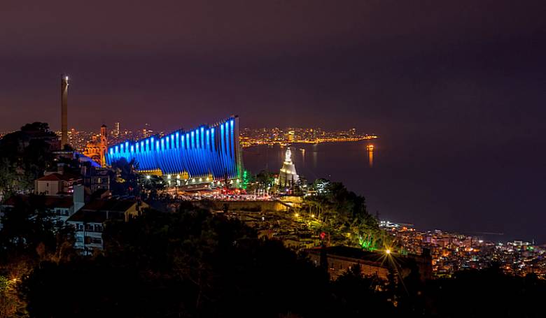 Dominantou pútnického miesta Harissa nie je iba moderná katedrála zo skla a betónu, ale tiež vedľa stojaca 15-tonová bronzová socha Panny Márie. / Snímka: wikimedia/Paul Saad