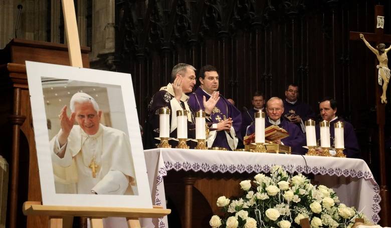 „Pápež Benedikt XVI. chcel propagovať a posilniť dialóg medzi vedou a vierou. Učil nás, že Boh nie je idea, ale osoba. Boh nie je niečo, ale niekto. A my máme stretnúť túto osobu, preto aj prvá encyklika Benedikta XVI. sa volá Deus caritas est – Boh je láska. Keď si teraz pripomíname Benedikta XVI. a modlíme sa za neho, aj my sa usilujme o osobné každodenné stretnutie s Bohom, ktorý nie je ideou, ale osobou. Teraz, keď je už v nebi, určite sa za nás modlí a bdie nad Cirkvou. A aj my sa snažme modliť za neho.“