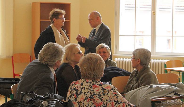 Bývalí učitelia a absolventi Premonštrátskeho gymnázia si v priestoroch školy zaspomínali na staré časy. / Snímka: Lea Szakszonová