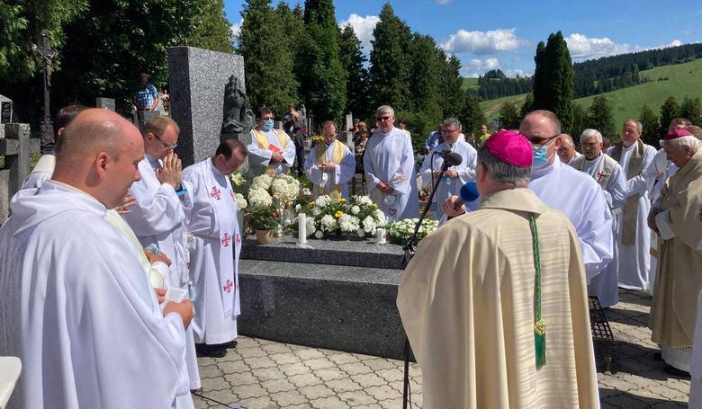 Modlitba pri hrobe biskupa Jána Vojtaššáka v jeho rodnej obci Zákamenné. Snímka: Spišská diecéza