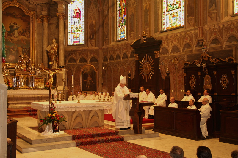 Pri svätej omši v rožňavskej katedrále sa modlili aj za to, aby sa i dnešní kňazi starali o zveľadenie liturgie. / Snímka: Mária Lilková