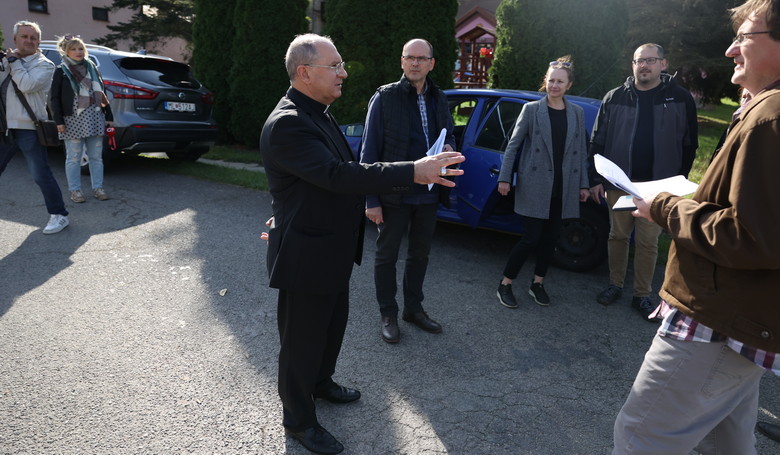 Košický arcibiskup metropolita Bernard Bober navštívil vo štvrtok 12. októbra viaceré obce, ktoré zasiahlo zemetrasenie. Snímka: Jaroslav Fabian