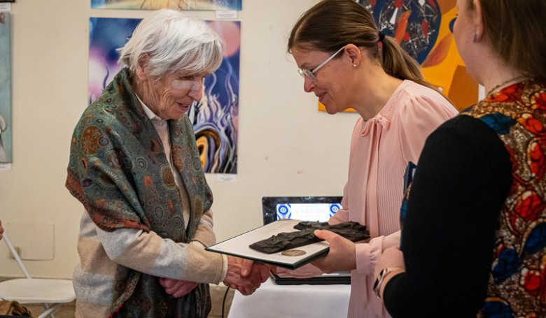 Ocenenie Skutočný človek odovzdala Vilme Cipárovej Zuzana Danková, členka správnej rady Nadácie Danice Olexovej Baboon. Snímka: Erika Litváková