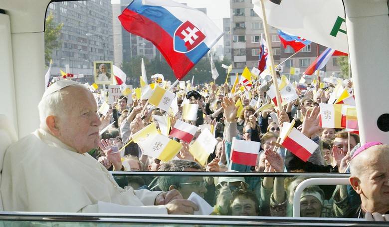 Na archívnej snímke je pápež Ján Pavol II. počas svojej apoštolskej návštevy v Bratislave-Petržalke v roku 2003. Snímka: profimedia.sk