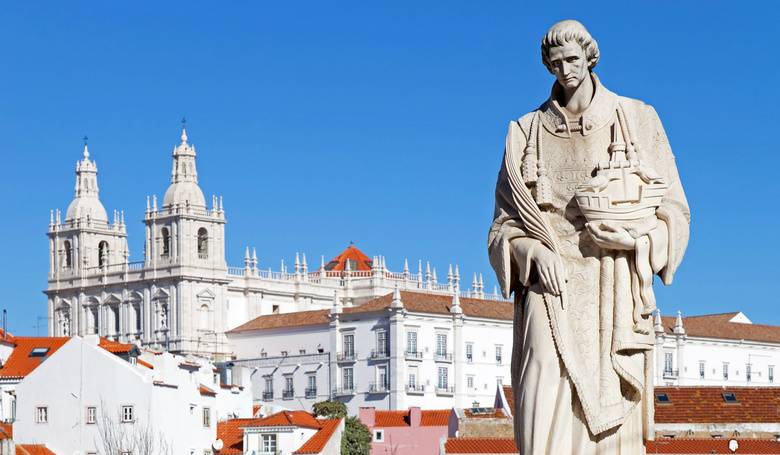 Socha sv. Vincenta v Miradouro das Portas do Sol v portugalskom Lisabone. Ilustračná snímka: www.istockphoto.com