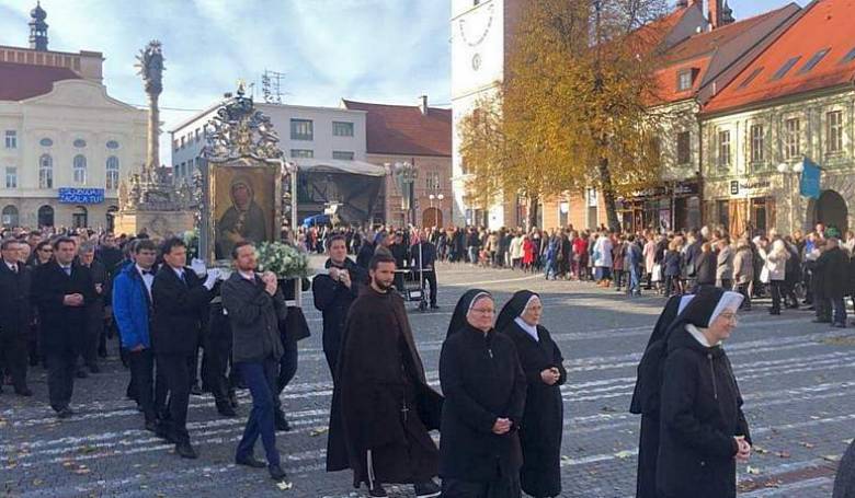 Aj tento rok centrom Trnavy prechádzala procesia s milostivým obrazom. / Snímka: Jozef Sedlák