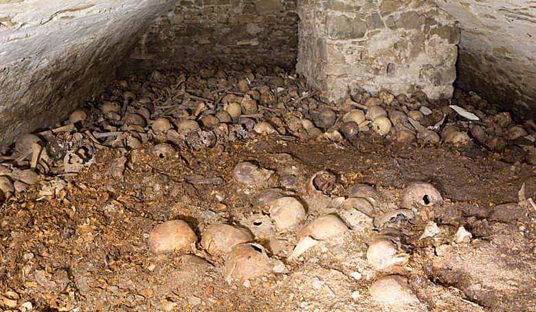 Krypta bola plná ľudských kostrových pozostatkov, hliny, našli sa aj fragmenty látky. / Snímka: Alojz Mičieta