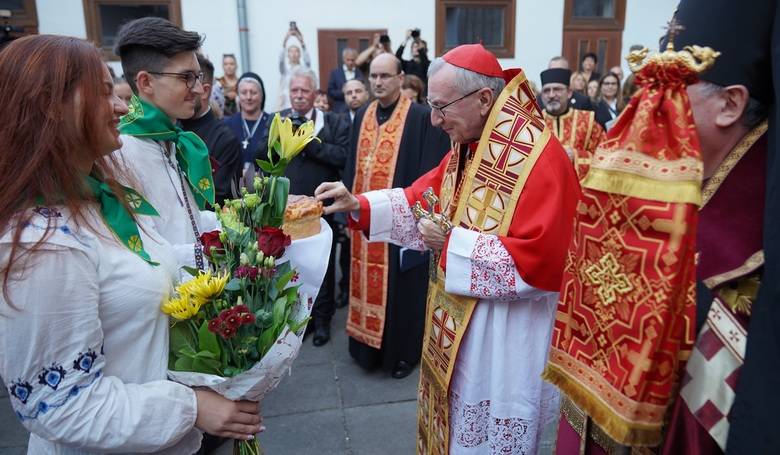 Kardinál Parolin vysoko ocenil pomoc, ktorú slovenskí gréckokatolícki veriaci preukázali ukrajinským utečencom. Snímka: Jozef Kmec