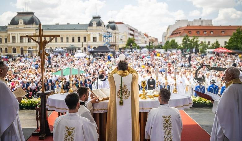 Svätou omšou na Svätoplukovom námestí v Nitre vyvrcholila 5. júla cenonárodná cyrilo-metodská púť. Snímka: Marek Mucha
