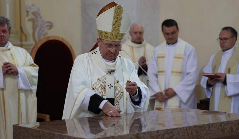 „Nech je tento obnovený kostol a nový pevný oltár pre vás akýmsi mementom v čase života, ktorý vám Boh osobitne dopraje, a nech je na tomto mieste zjavné, že sa tu spája človek s Bohom a časnosť s večnosťou. V spojení s Kristom vás čaká pekná budúcnosť,“ povzbudil v homílii prítomných arcibiskup Bernard Bober.