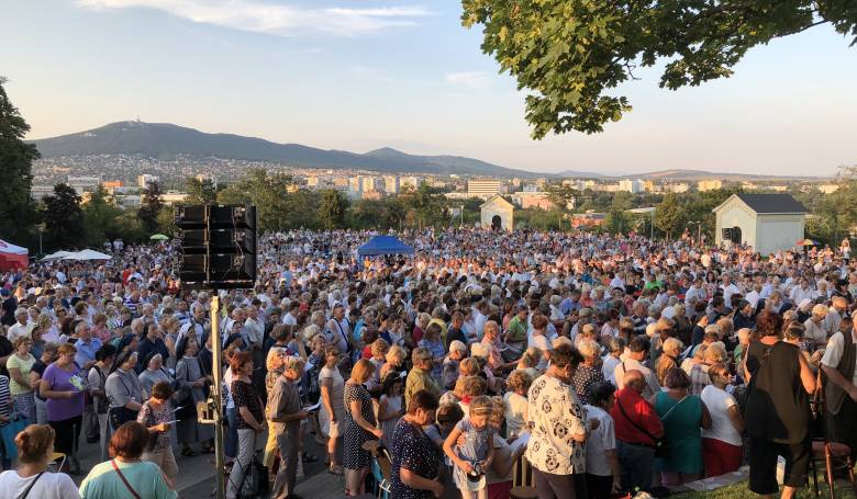 Na kalvársky vrch v Nitre prišli opäť desiatky pútnikov, aby si uctili Božiu Matku. / Snímka: Miroslav Lyko