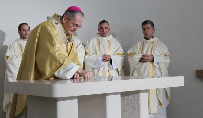 Po homílii a speve Litánií k svätým arcibiskup vložil do oltára relikvie sv. Filipa a Jakuba a pomazal oltár na piatich miestach podľa počtu Ježišových rán, ktoré nazval „majákmi milosrdenstva“.