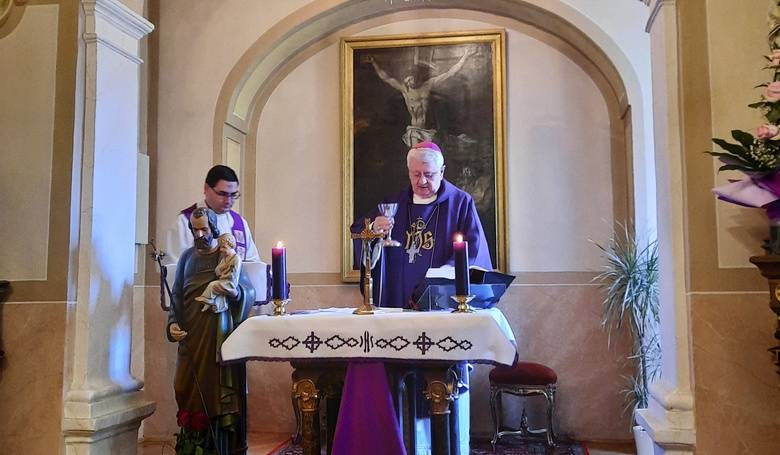 Rožňavský biskup Stanislav Stolárik slávil svätú omšu na Popolcovú stredu v biskupskej kaplnke v Rožňave. Snímka: Mária Červená, FMA