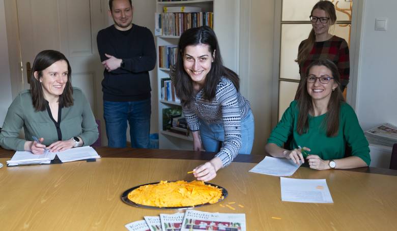 Na snímke zľava: notárska kandidátka Zuzana Juríková a členovia redakcie KN Ján Lauko, Miroslava Gromanová, Monika Šimoničová a Monika Takáčová. Snímka: Erika Litváková