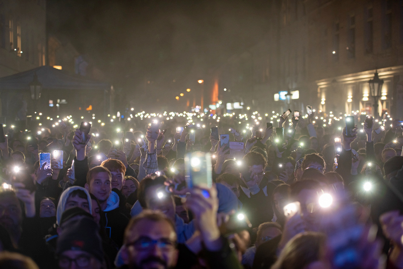 Katolícky kňaz a známy dídžej Guilherme Peixoto z Portugalska roztancoval davy ľudí pred košickou katedrálou. Podľa organizátorov sa ich zišlo okolo 25-tisíc. Snímka: Peter Dobrovský