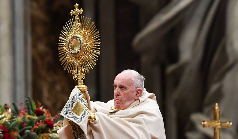 Pápež František požehnal veriacich v záverečný deň roka 2019 Najsvätejšou oltárnou sviatosťou. Snímka: profimedia.sk