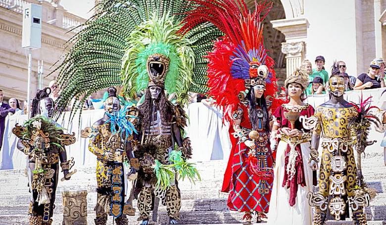 Na generálnej audiencii bola prítomná aj mayská tanečná skupina z Mexika. Snímka: profimedia.sk
