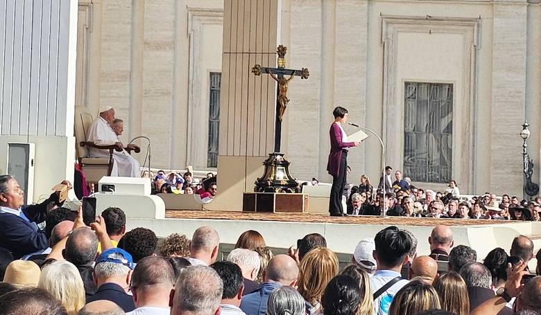 Pápežovej katechéze predchádzalo čítanie Hymnu na lásku z Prvého listu Korinťanom vo svetových jazykoch. Snímka: Zuzana Szakácsová