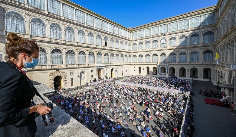 Vyše štyristo veriacich sa na Nádvorí sv. Damaza vo Vatikáne stretlo so Svätým Otcom Františkom. Pútnici si osobne vypočuli jeho príhovor a prijali požehnanie. Pápež venoval veľký priestor osobnému kontaktu s ľuďmi - pred audienciou dlhší čas prechádzal stredom nádvoria a rozprával sa s prítomnými veriacimi.
